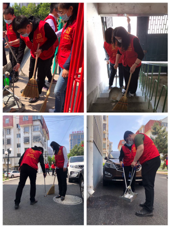 志愿者清掃社區(qū)衛(wèi)生