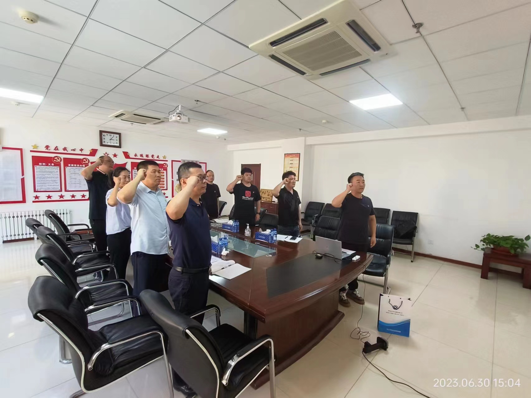 隨后為初志杰、韋霖兩位黨員同志過政治生日,組織全體黨員進行入黨宣誓;公示6月份黨費收繳情況;集中收看燈塔大課堂—“基層一線黨員風采”。