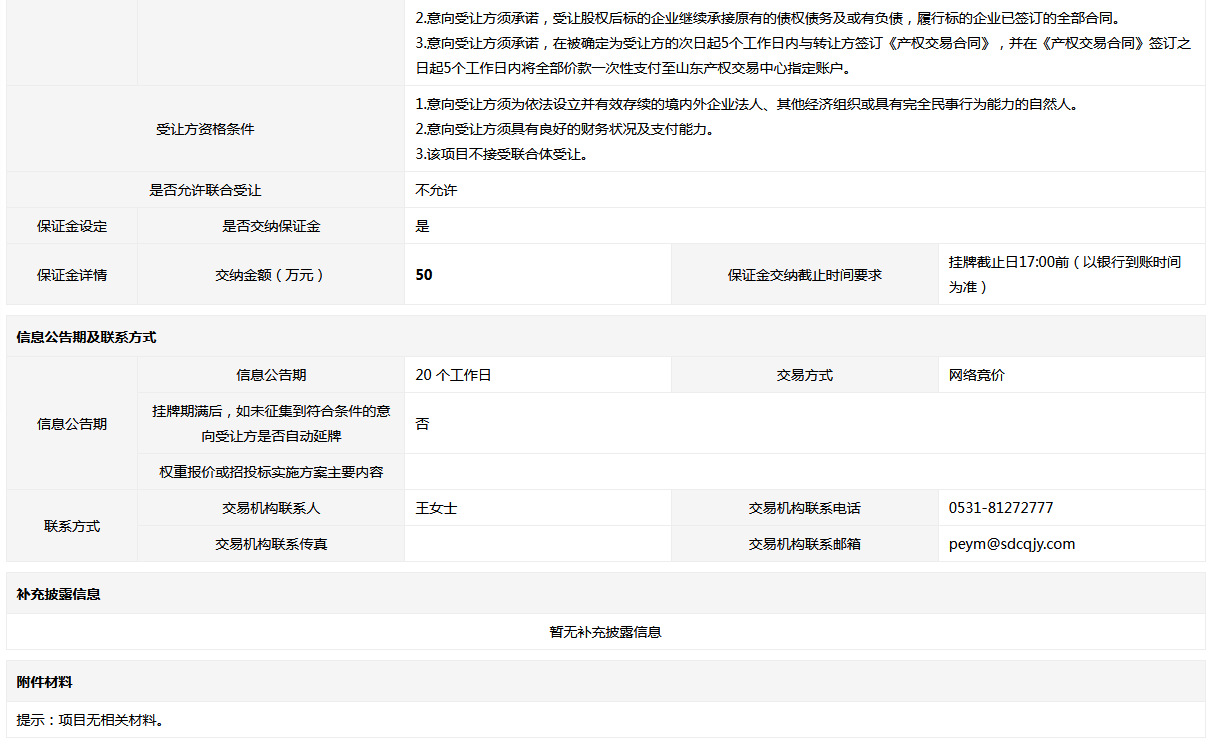 - 轉(zhuǎn)讓方: 煙臺(tái)市福山區(qū)財(cái)政局(煙臺(tái)市福山區(qū)國有資產(chǎn)監(jiān)督管理局)