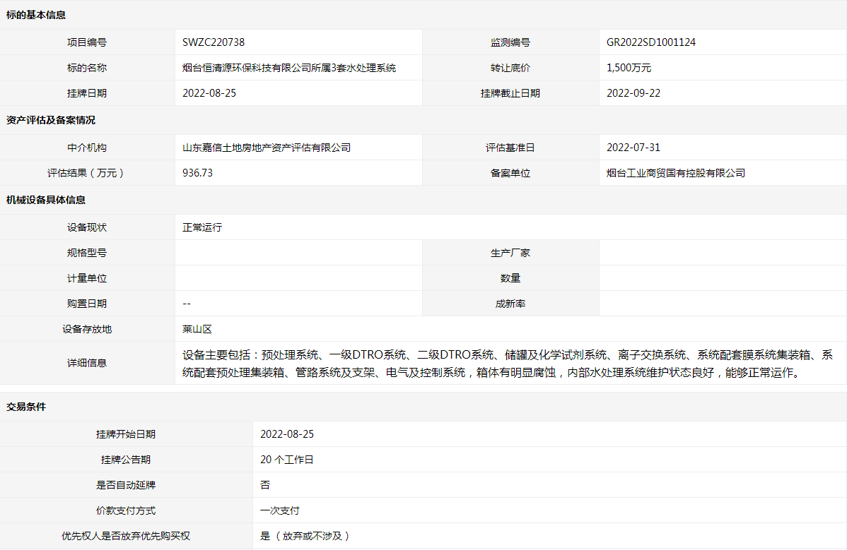 轉讓方:煙臺恒清源環(huán)保科技有限公司