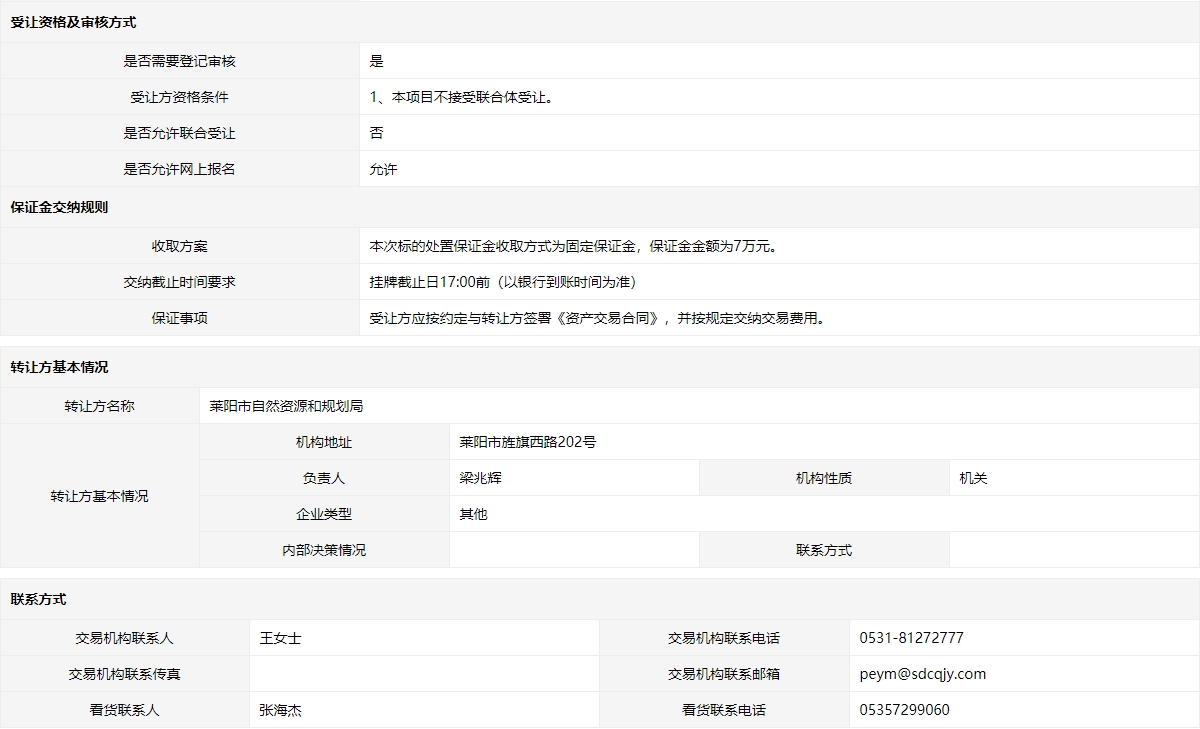 轉(zhuǎn)讓方:萊陽市自然資源和規(guī)劃局