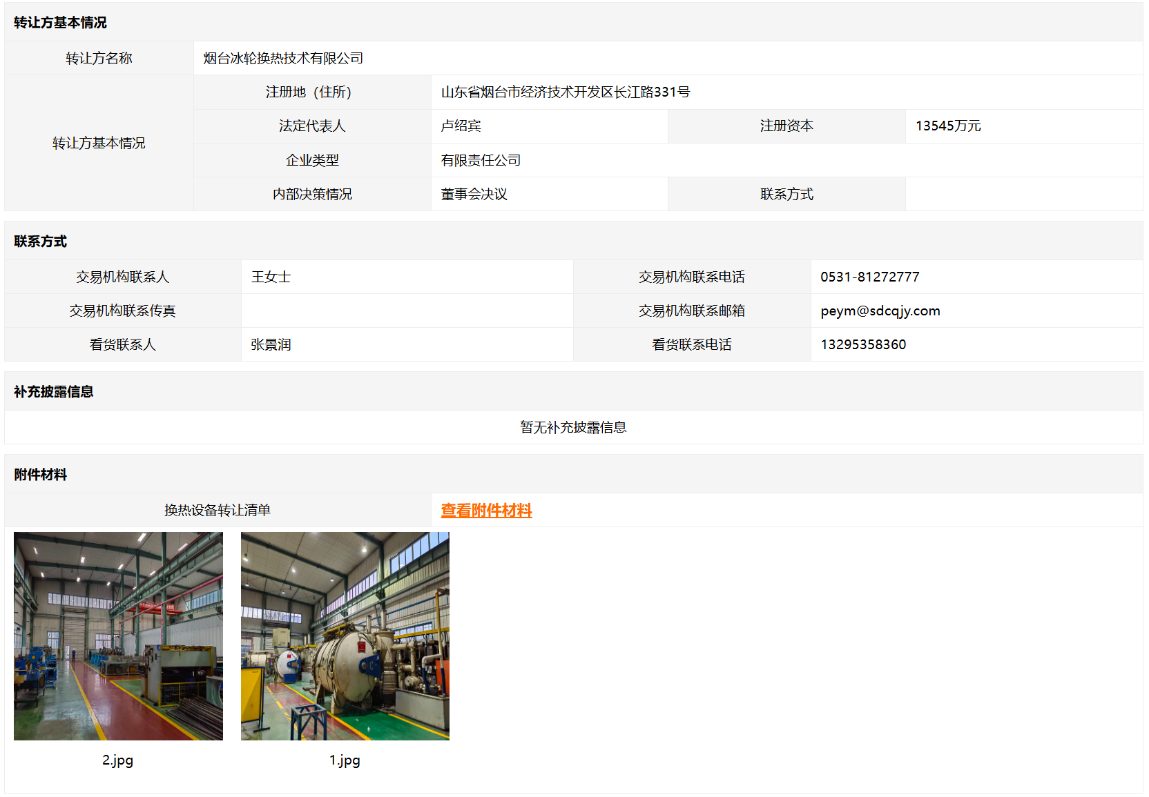 轉(zhuǎn)讓方:煙臺冰輪換熱技術(shù)有限公司