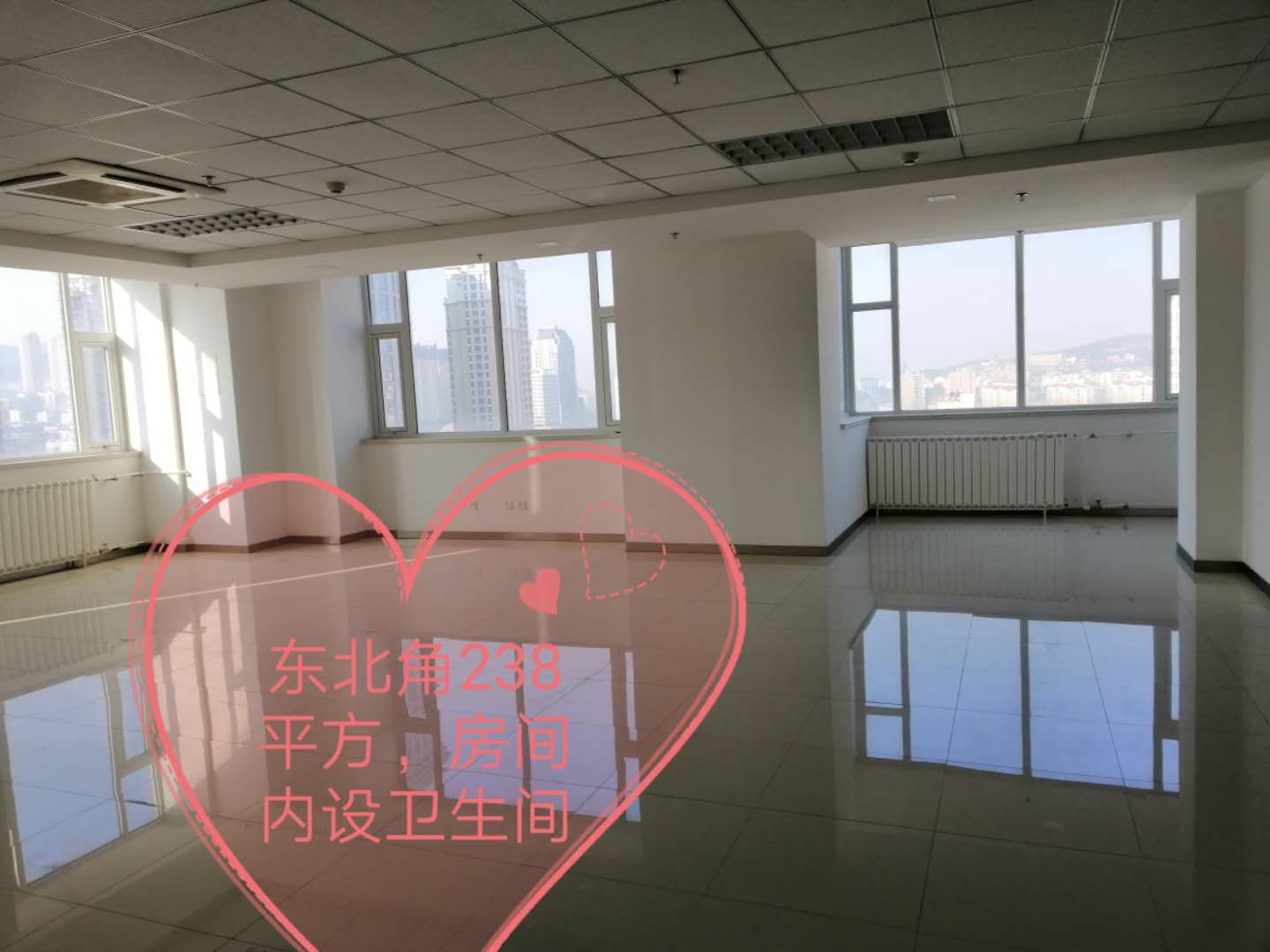 精裝修寫字間面積從48-238㎡不等,有不同種類的戶型,可滿足您各種需求;另有兩層未裝修的樓層也可供選擇;網(wǎng)點(diǎn)房一間面積277㎡,廣場(chǎng)場(chǎng)地同時(shí)對(duì)外出租。