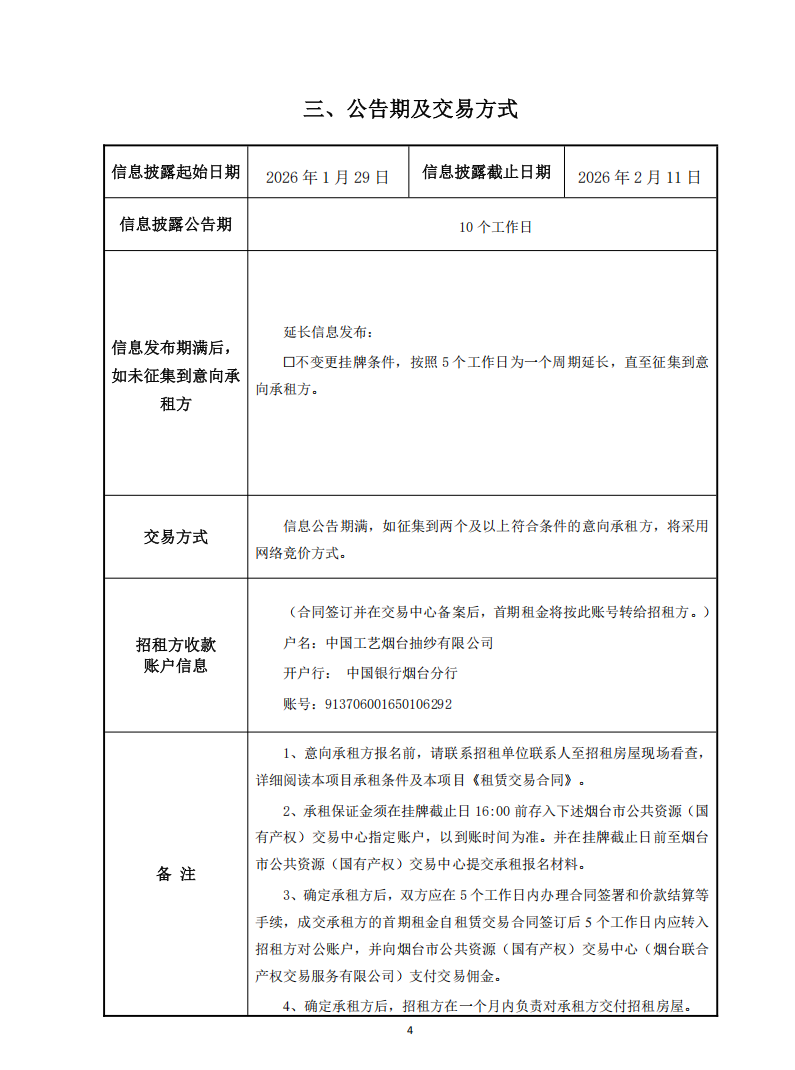掛牌起止日期:2026年1月29日-2026年3月3日